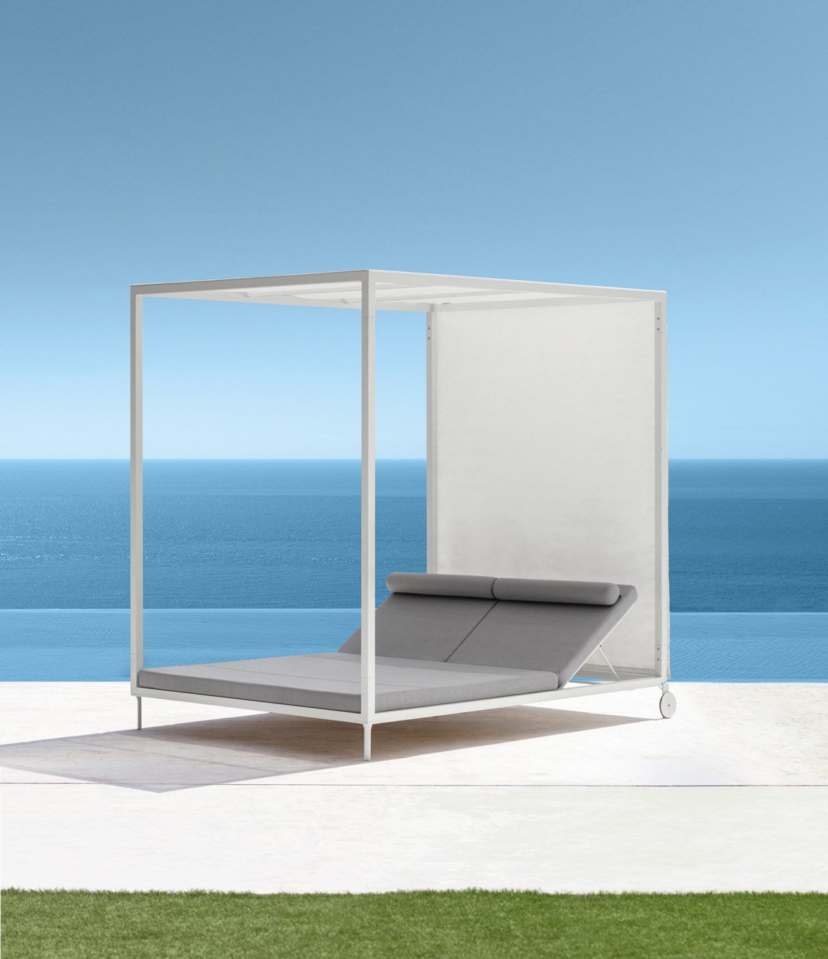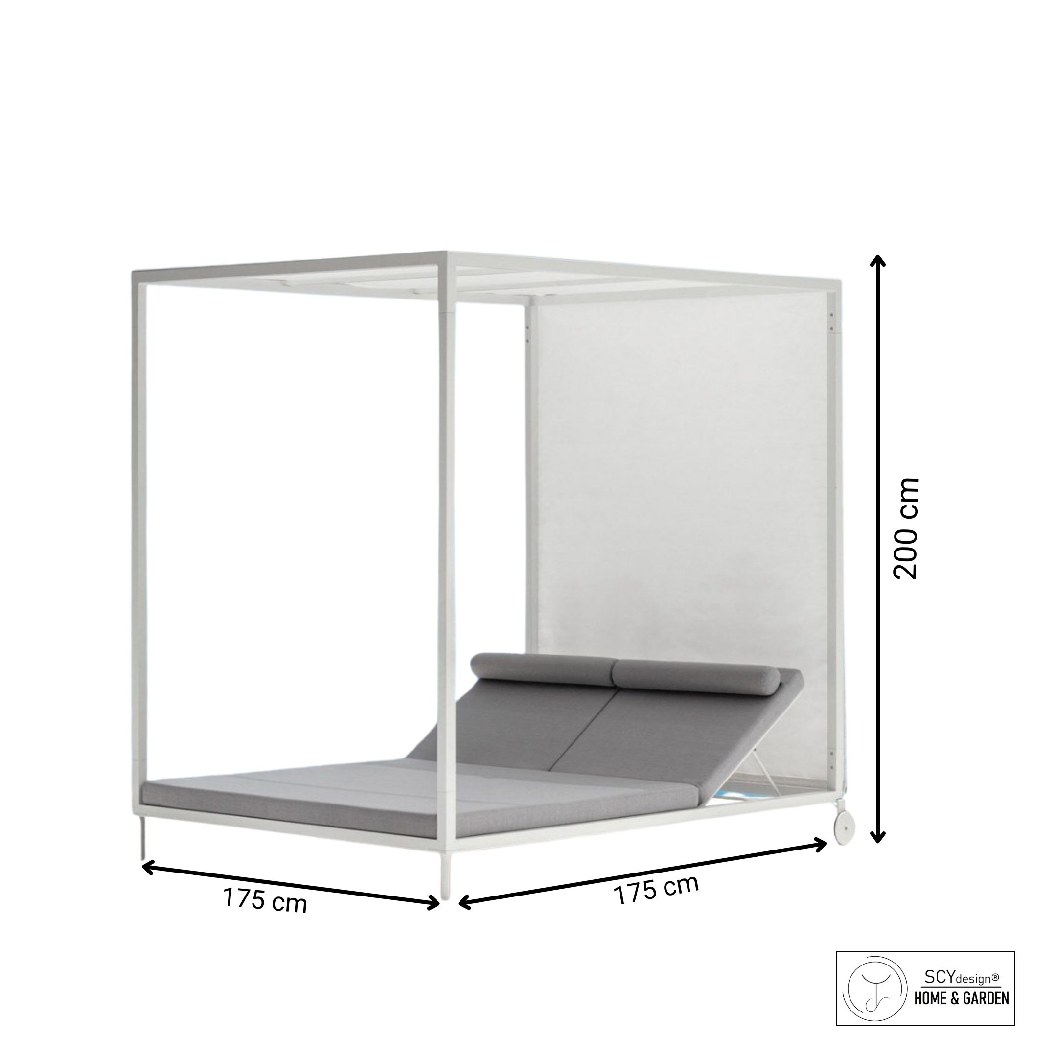 SCBM-020 Newport İki Kişilik Gölgelikli Havuz Başı Şezlong Tekerli Güneşlik Perdeli Bahçe Yatağı Daybed Divan