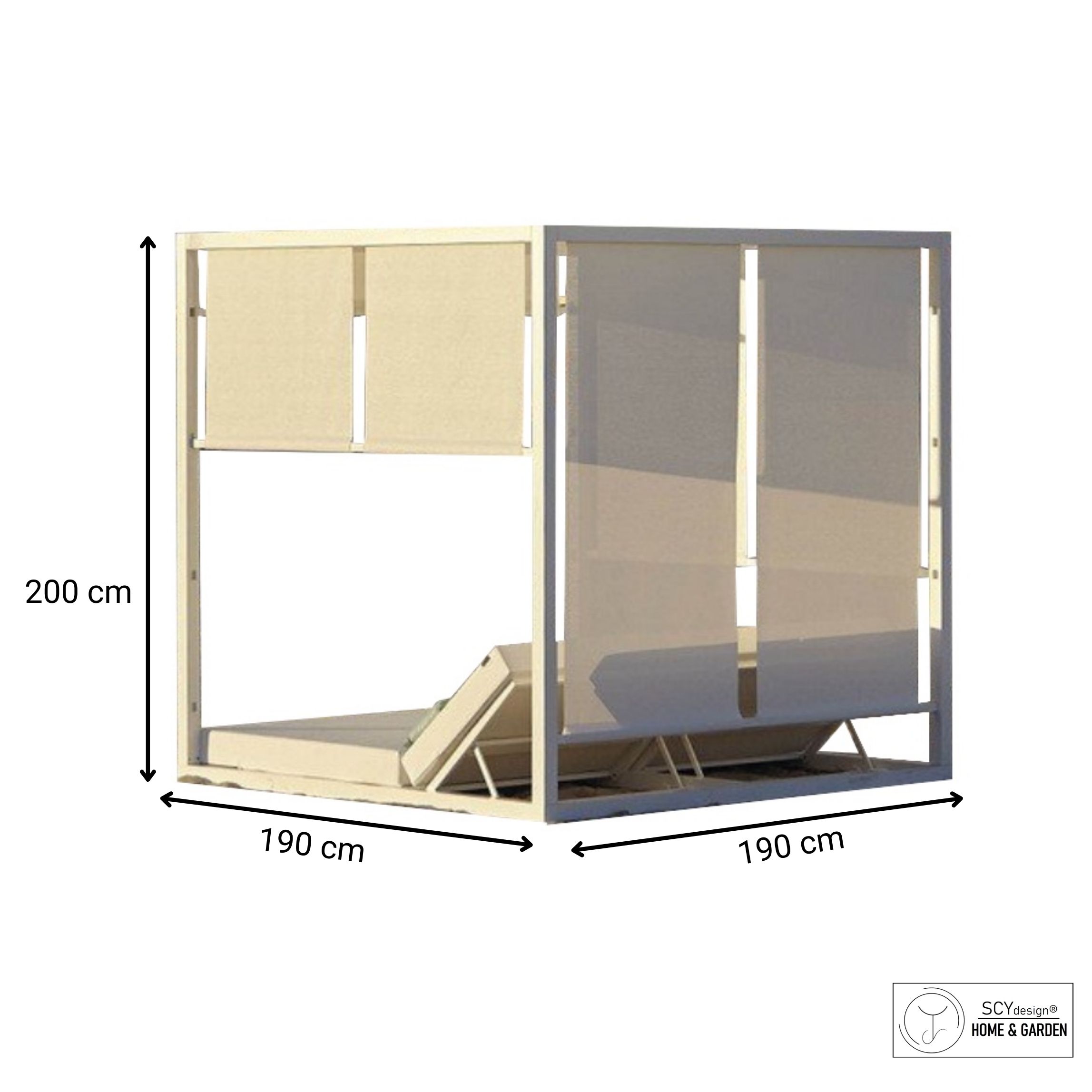 SCBM-022 Profugo 2 Kişilik Gölgelikli Perdeli Şezlong Havuz Başı Divan Ayarlı Daybed Plaj Yatağı Sunbed
