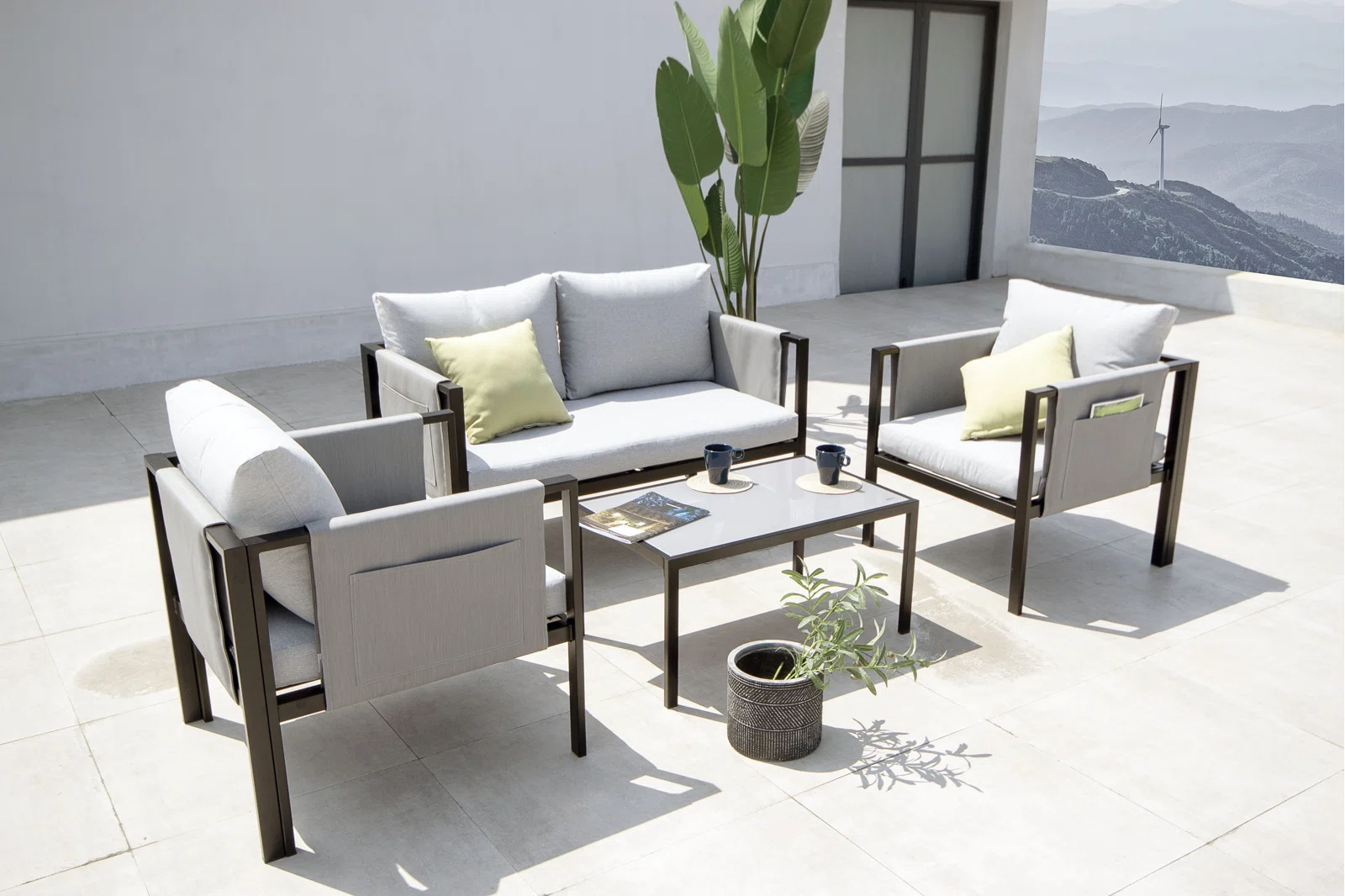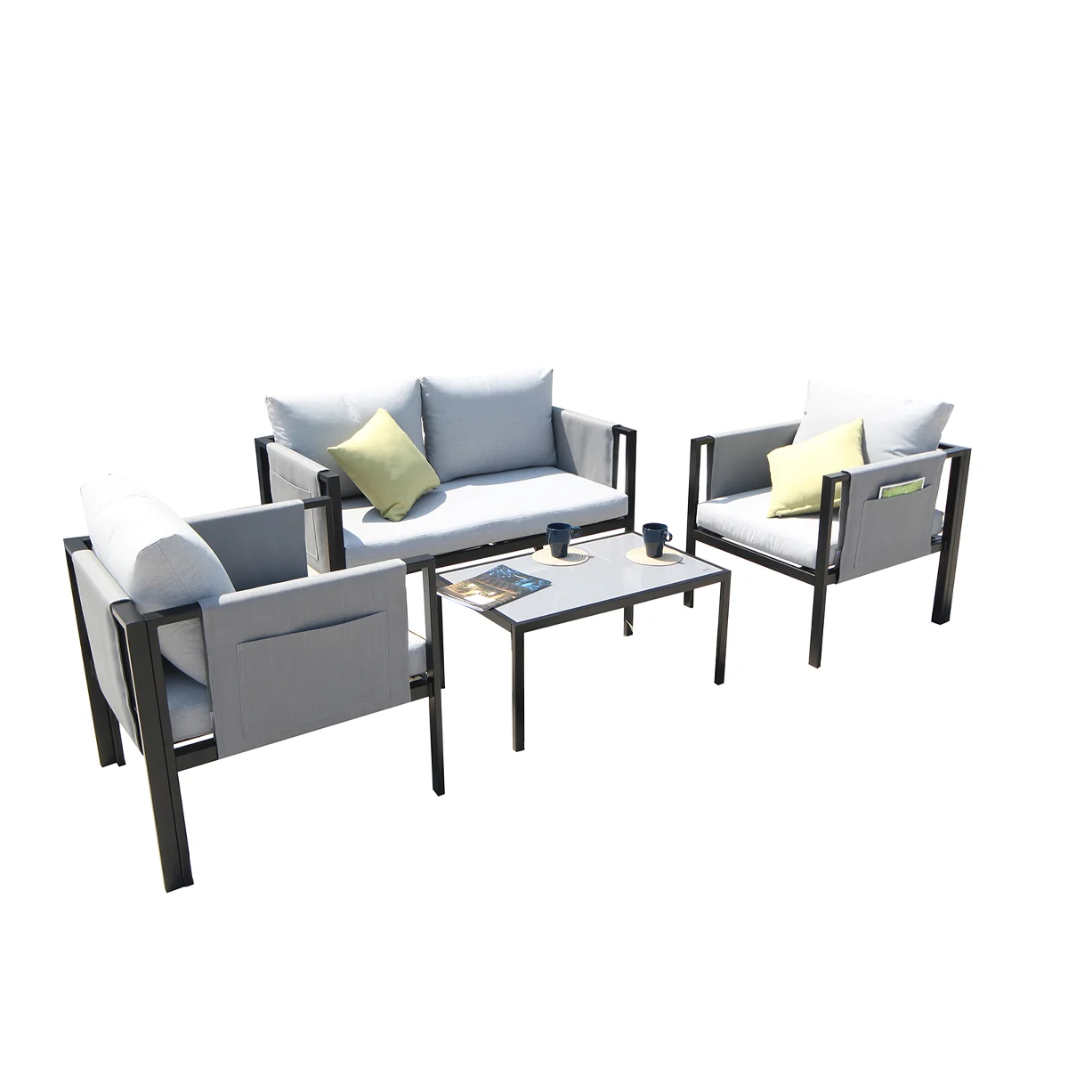 SCBM-192 Funtas Metal Ayak Modern Bahçe Mobilyası Dergilik Detay Cepli Balkon Koltuk Takımı Oturma Grubu