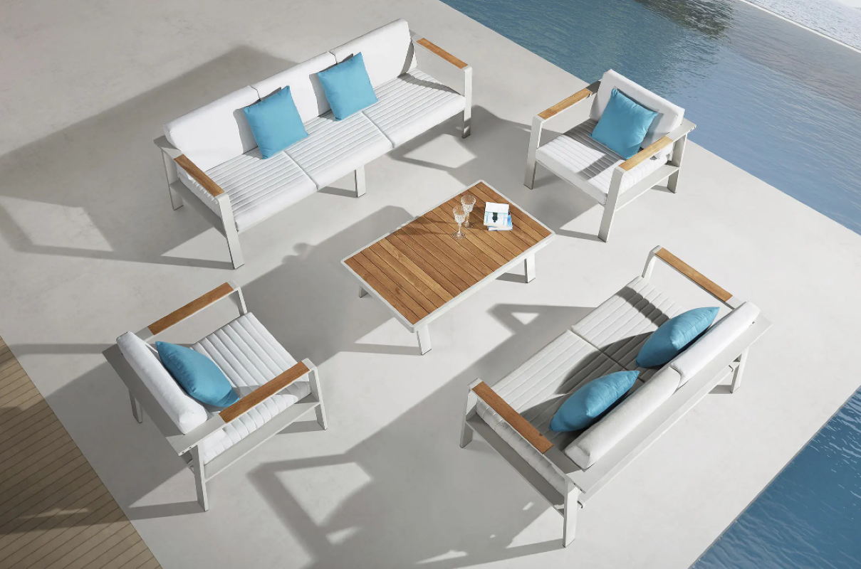 SCBM-251 Ocolab Modern Bahçe Mobilya Takımı Oturma Grubu Ahşap Detaylı Koltuk Çay Seti