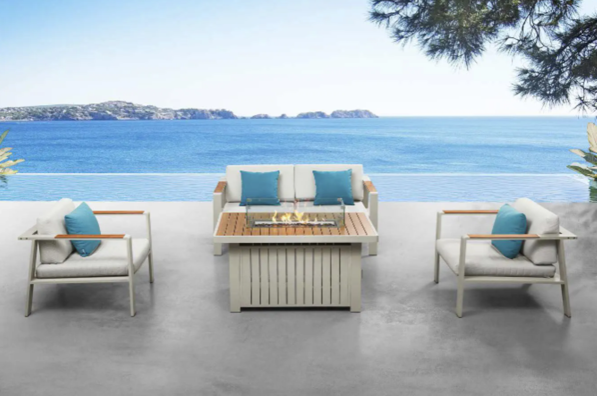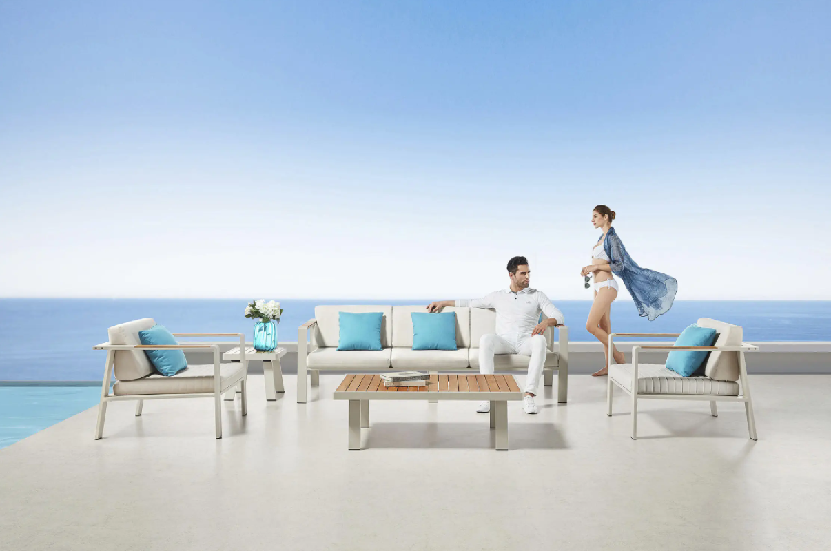 Ocolab Modern Bahçe Mobilya Takımı Oturma Grubu Ahşap Detaylı Koltuk Çay Seti