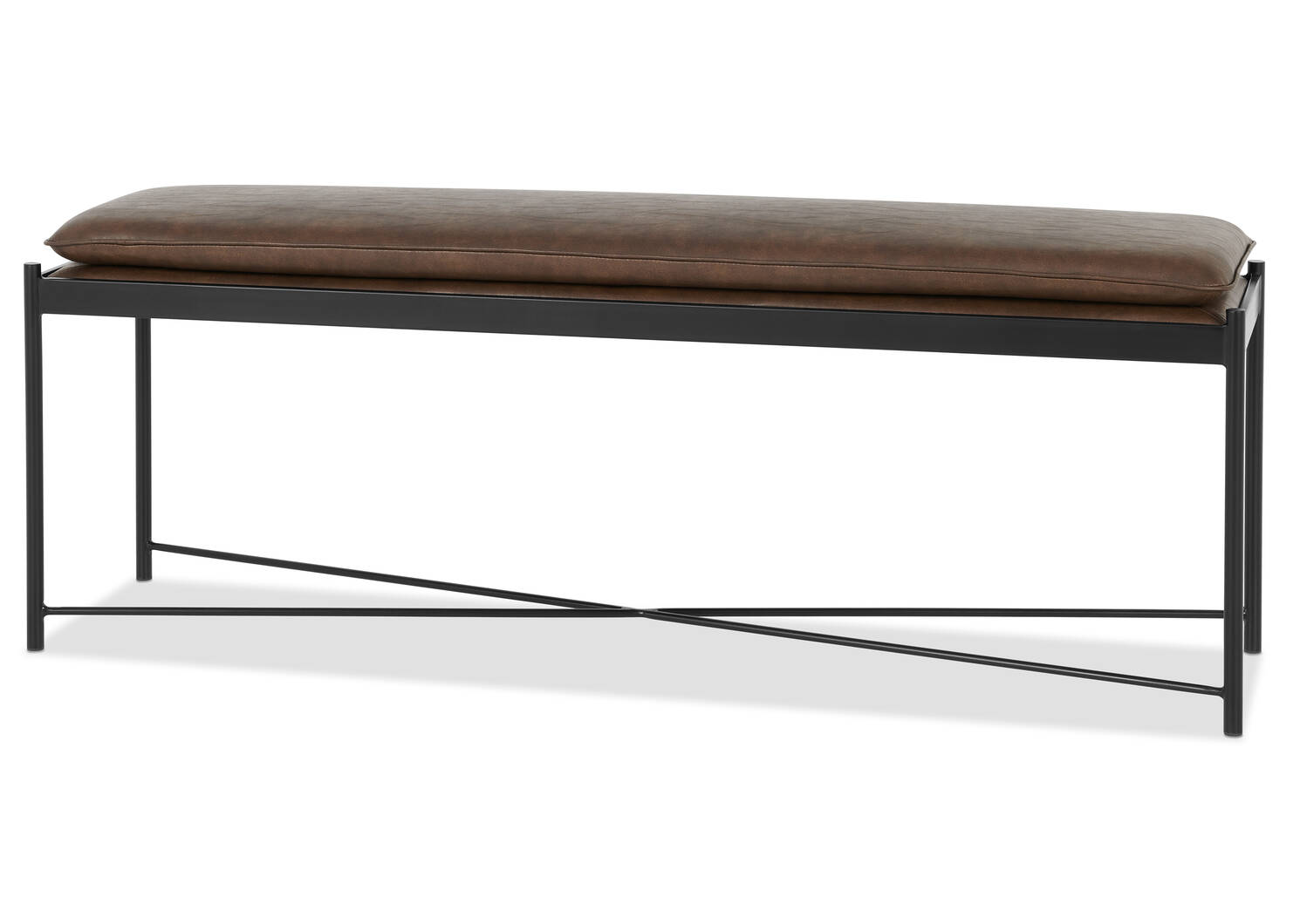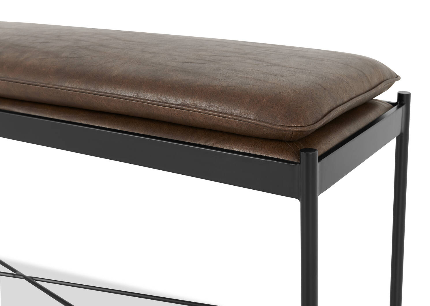 Tesque Kahverengi Suni Derili Metal Ayaklı Dikdörtgen Puf Dekoratif Montajsız Yatak Ucu Bench Bank